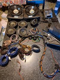 -impianto stereo dolby ORIGINALE BMW composto da 5mid + 5 tweeter + 2 woofer + ampli + cablaggio completo + cornici sportelli anteriori. (disponibile la guida per il montaggio). 500euro