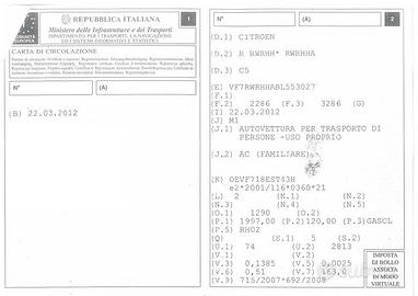 RICAMBI CITROEN C5 SW 2.0 HDI AUT. ANNO 2012