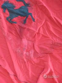 N. 1 telo copriauto rosso doppio specchio con stemma "Cavallino" per Ferrari Testarossa con evidenti rotture come da foto