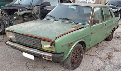 Vendo ricambi x Fiat 131 seconda serie , 1.6 benzina , sigla codice motore 131A1000 , muso , musata , paraurti , fari , stop , cofano , portellone , radiatore , ventola , sportello , porta , portiera , serratura , vetri , specchietti laterali , sedili tappezzeria , pannelli , galleggiante , serbatoio , motore completo di carburatore 1600 , cambio automatico , calandra , marmitta , scarico , collettore , mozzi , fusello , pinze freno , dischi , ammortizzatori , sospensioni , volante , scatola sterzo , culla , barca avantreno , retro treno , alternatore , motorino avviamento , comandi aria , devia luci , mascherina , frecce , blocca sterzo , ponte , albero trasmissione , piantone , snodo , bracci , alette para sole , cerchi