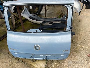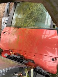 Portiere posteriori azzurre ed arancioni e porte carico da Fiat Multipla 2 serie. Una portiera azzurra presenta qualche ammaccatura