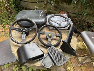 Vari ricambi Land Rover Defender; alcuni sono specifici per 110, la maggior parte sono universali... Supporto ruota di scorta (2 pezzi): 50 euro (cad.) Paraurti anteriore con inserti in gomma; diritto... venduto Bull Bar; necessita di riverniciatura; 100 euro (NON spedibile) Griglie protezioni anteriori apribili : vendute Griglie protezioni posteriori : vendute Paraspruzzi in gomma posteriori: venduti Predellino posteriore: venduto Coppia predellini (da sistemare): 100 euro Kit molle originali per 110: 180 euro Kit ammortizzatori originali: venduti Sedile anteriore (seduta, da rivestire): 60 euro Protezione aspirazione: venduta Plastica quadro strumenti (nuova): venduta Plancia cruscotto (dal 2002, nuova): venduta Volante OMP completo di mozzo per 19J e similari: 80 euro Volante SR Racing completo di mozzo 36 cave: 80 euro Volante sportivo (senza mozzo): 50 euro Griglie plastica parafanghi anteriori (coppia): vendute Specchi retrovisori: due pezzi completi, un guscio: 30 euro Fanalini posteriori completi e solo gemme (in blocco): venduti Devioluci nuovi (tre pezzi): venduti Comando luci e clacson (nuovi): venduti Stemma Land Rover alluminio 40 euro