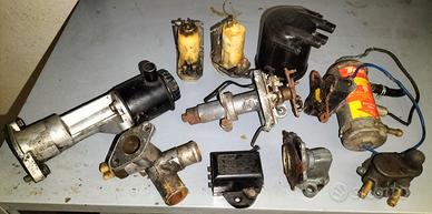 Vendo ricambi originali usati da primo equipaggiamento Lancia 2000 Coupé Pininfarina, terza serie, 1971/74. Blocco frizione ZF 5 marce, serie numero 820230. Blocco leva cambio. Blocco camera aspirazione motore. Due carburatori doppio corpo Solex. Scatola cilindrica filtro aria. Radiatore acqua. Serbatoio benzina. Blocco ventola di raffreddamento motore. Due dischi freno. Una pinza freni anteriori marca Dunlop. Un cuscinetto ruota. Vari componenti motore. Volante originale Lancia 2000 Coupé. Parabrezza anteriore. Vetri a compasso posteriori dx. e sx. Tre fanali circolari anteriori più due cornici cromate. Blocco luci di posizioni paraurti anteriore più plastiche scure. Fanali posteriori completi dx. e sx. Blocco luci di emergenza apertura portiere dx. e sx. Strumenti circolari plancia, indicazioni tachimetro-contatore km. e livello serbatoio. Cornice cromata porta targa. Kit nuovi e originali Lancia, guarnizioni testata motore e fasce elastiche pistoni-cilindri. Deviatori comandi dx. e sx. Bracci tergicristalli cromati dx. e sx. completi di spazzole originali. Specchietto retrovisore interno. Logo Lancia calandra anteriore. Calotta bobina. Manicotti e tubazioni vari. Svariati ricambi vano motore, ect. RICAMBI VENDIBILI IN BLOCCO E/O SINGOLARMENTO A PREZZI DA CONCORDARE.