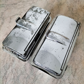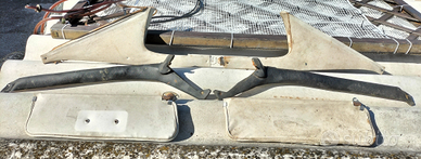 Vendo ricambi originali usati da primo equipaggiamento Lancia Flavia Coupé Pininfarina 1.8 carburatore, prima serie, epoca 1963/68. Blocco motore completo, numero di serie modello 815330. Serbatoio benzina. Volante originale in ebanite nero per Lancia Flavia coupé 2 serie, 2000 coupé, Fulvia sport 2 serie. Quadro strumenti plancia completo. Blocco comandi plancia a due rotelle per regolazione aria calda/fredda e leva deviatore flusso. Due leve cromate interne apri portiere. Placca plancia cromata contorno autoradio. Copertura vano autoradio Logo Pininfarina. Due posaceneri laterali posteriori a coperchio cromato. Leva freno di stazionamento con piastra basamento a L cromata completa di guarnizione di gomma abitacolo. Leva cambio lunga con pomello e cuffia. Doppia fanaleria anteriore a doppi fanali dx. e sx. più due fanalini circolari anteriori di posizione dx. e sx. completi di placche cornici esterne cromate. Due fanali circolari anteriori di profondità con cornici di fissaggio. Due coppe cromate per cerchioni con incisione logo Lancia. Blocco meccanismo tergicristalli. Due modanature cromate da finizione carrozzeria zona inferiore finestrini posteriori a compasso dx. e sx. Due alette parasole dx. e sx. Due pneumatico originali, disegno classico, Michelin 165 R15 H80, 60% ad uso ruota di scorta vano bagagli. Parti vano motore, vaschette liquidi, pompetta a depressione Trico, supporti, staffe, manicotti e tubicini, ect. RICAMBI VENDIBILI IN BLOCCO E/O SINGOLARMENTE A PREZZI DA CONCORDARE.
