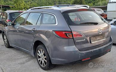 Vendo ricambi x Mazda 6 , anno 2008 , 2.0 diesel , sigla codice motore RF , 103 kw , muso , musata , paraurti , fari , stop , parafanghi , cofano , portellone , radiatori , ventole , sportello , porta , portiera , serratura , vetri , motorino macchinetta alza vetri , pulsantiera , maniglia , specchietti laterali , sedili tappezzeria , pannelli , galleggiante , serbatoio , motore , cambio , turbina , pompa , iniettori , semi asse , giunto , calandra , marmitta , scarico , collettore , mozzi , fusello , pinze freno , dischi , ammortizzatori , sospensioni , tergicristalli , cruscotto , kit air bag , contachilometri strumentazione , volante , scatola sterzo , culla , barca avantreno , retro treno , pompa idroguida servo sterzo , alternatore , motorino avviamento , turbina , compressore aria condizionata , comandi aria clima , devia luci , bauletto porta oggetti , mascherina , parabrezza , frecce , fendinebbia , centralina pompa abs , sonda , sensori , centralina motore , blocca sterzo , ponte , pannello cappelliera posteriore mensola , ruota di scorta , piantone , snodo , bracci , passa ruota , tetto , alette para sole , vaschetta acqua , cerchi