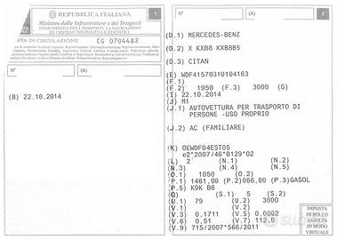 RICAMBI MERCEDES CITAN 1.5 DCI ANNO 2014