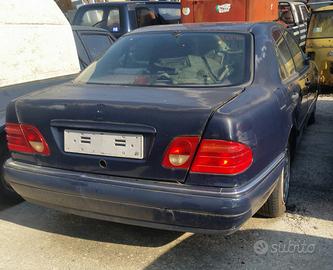 Vendo ricambi x Mercedes classe E , modello W 210 turbo e aspirato , 250 , 270 , fari , stop , parafanghi , cofano , portellone , radiatori , ventole , sportello , porta , portiera , serratura , vetri , motorino macchinetta alza vetri , pulsantiera , maniglia , specchietti elettrici laterali , sedili tappezzeria , pannelli , galleggiante , serbatoio , motore , cambio 5 e 6 marce , iniettori , semi asse , giunto , calandra , marmitta , scarico , collettore , mozzi , fusello , pinze freno , dischi , ammortizzatori , sospensioni , tergicristalli , cruscotto , kit air bag , contachilometri strumentazione , volante , scatola sterzo , culla , barca avantreno , retro treno , pompa idroguida servo sterzo , alternatore , motorino avviamento , compressore aria condizionata , comandi aria clima , devia luci , bauletto porta oggetti , mascherina , parabrezza , fendinebbia , centralina pompa abs , sonda , sensori , centralina motore , blocca sterzo , ponte , pannello cappelliera posteriore mensola , ruota di scorta , piantone , snodo , bracci ,passa ruota , tetto , alette para sole , 1 cerchio r15 , 2 cerchi r16 , vaschetta acqua