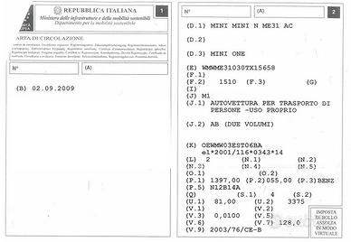 RICAMBI MINI ONE 1.4 B ANNO 2009