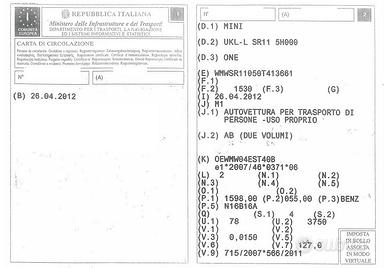 RICAMBI MINI ONE 1.6 B ANNO 2012