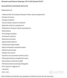 RICAMBI NISSAN QASHQAI PRE-RESTYLING (J10) 1.5 DCI