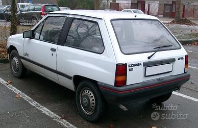 Vendo ricambi x opel corsa prima serie , benzina e diesel , 3 e 5 porte , tettino tettuccio apribile , muso , musata , paraurti , fari , stop , parafanghi , cofano , portellone , radiatore , ventola , sportello , porta , portiera , serratura , vetri , motorino macchinetta alza vetri , pulsantiera , maniglia , specchietti laterali , sedili tappezzeria , pannelli , bobina , pompetta benzina , galleggiante , serbatoio , motore , cambio , semi asse , giunto , calandra , marmitta , scarico , collettore , mozzi , fusello , pinze freno , dischi , ammortizzatori , sospensioni , tergicristalli , cruscotto , contachilometri strumentazione , volante , scatola sterzo , culla , barca avantreno , retro treno , alternatore,motorino avviamento , comandi aria , devia luci , bauletto porta oggetti , mascherina , parabrezza , frecce , blocca sterzo , ponte , pannello cappelliera posteriore mensola , ruota di scorta , piantone , snodo , bracci , passa ruota , tetto , alette para sole , cerchi in lega e in ferro , vaschetta acqua , spinterogeno , carburatore , ecc...molti pezzi sono compatibili con gsi