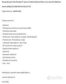 RICAMBI PER FIAT PANDA 1.0 MILD HYBRID 70CV CON SO