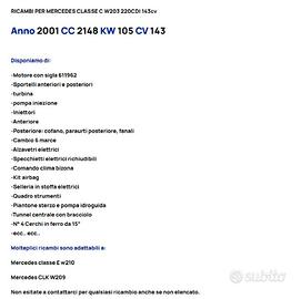 RICAMBI PER MERCEDES CLASSE C W203 2.2 CDI 143CV