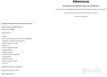 RICAMBI PER MERCEDES CLK W209 2.7 CDI 170CV