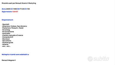 RICAMBI PER RENAULT SCENIC II 1.6 B/GPL 105 CV RES