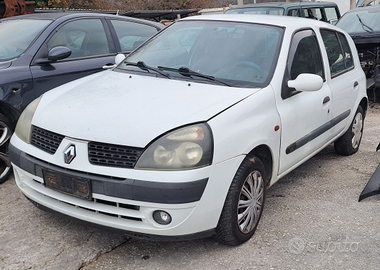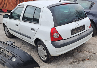 Vendo ricambi x renault clio , modello '98 - '04 , benzina e diesel , iniezione , mono iniettore , muso, musata , paraurti , fari , stop ,parafanghi, cofano , portellone (anche modello RS con spoiler ), radiatore , ventola , sportello , porta , portiera , serratura , vetri , kit air bag , macchinetta alza vetri , maniglia , specchietti laterali , sedili tappezzeria , pannelli , bobina , pompetta benzina , galleggiante , serbatoio , motore , cambio , semi asse , giunto , calandra , marmitta , scarico , collettore , mozzi , fusello , pinze freno , dischi , ammortizzatori , sospensioni , tergicristalli , contachilometri strumentazione , volante , scatola sterzo , culla , barca avantreno , retro treno , alternatore , motorino avviamento , devia luci , mascherina , parabrezza , frecce , blocca sterzo , ponte , pannello cappelliera posteriore mensola , ruota di scorta , piantone , snodo , bracci , passa ruota , tetto , alette para sole , cerchi