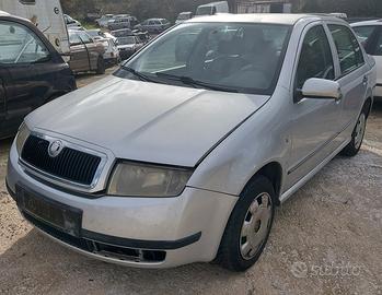 Vendo ricambi x skoda fabia , diesel e benzina muso , musata , paraurti , fari , stop , parafanghi , cofano , portellone , radiatori , ventole , sportello , porta , portiera , serratura , vetri , motorino macchinetta alza vetri , pulsantiera , maniglia , specchietti laterali , sedili tappezzeria , pannelli , galleggiante , serbatoio , motore , cambio , iniettori , semi asse , giunto , calandra , marmitta , scarico , collettore , mozzi , fusello , pinze freno , dischi , ammortizzatori , sospensioni , tergicristalli , cruscotto , kit air bag , contachilometri strumentazione , volante , scatola sterzo , culla , barca avantreno , retro treno , pompa idroguida servo sterzo , alternatore , motorino avviamento , compressore aria condizionata , comandi aria clima , devia luci , bauletto porta oggetti , mascherina , parabrezza , fendinebbia , centralina pompa abs , sonda , sensori , centralina motore , blocca sterzo , ponte , pannello cappelliera posteriore mensola , ruota di scorta , piantone , snodo , bracci ,passa ruota , tetto , alette para sole , cerchi , vaschetta acqua