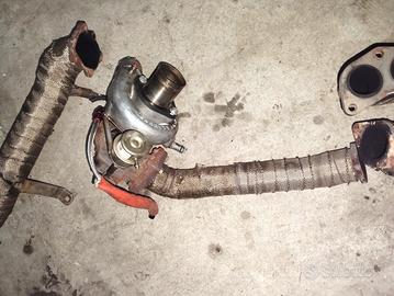 kit turbo con turbina Garrett g25 su cuscinetti,senza crepe ma magari da dare una revisionata , collettore di scarico in inox (dovrebbe essere super sprint) bendato,up pipe e down pipe tutto quanto bendato, a 400€