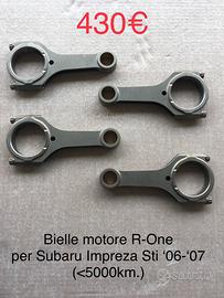 Centralina motore. Collettore di aspirazione. Valvola aspirazione a farfalla elettronica. Cascata ingranaggi del cambio. Strumentazione tachimetro cruscotto. Cablaggio elettrico. Centraline DCCD (quelle dietro il porta documenti). Centralina e sensori montanti Airbag. Alberi a camme. Pompa olio motore 12mm . (>5000km) Volano, frizione e spingidisco. Coppia conica anteriore e posteriore. Differenziale anteriore e posteriore. Asta cremagliera scatola sterzo. Coppa dell’olio. Pompa frizione e vaschetta olio. Servofreno. Radiatore climatizzatore. Compressore climatizzatore. Radiatore acqua motore. Vaschetta liquido di raffreddamento. Vaschetta acqua tergicristalli. Convogliatore e manicotto per airbox filtro. Pedali acceleratore, freno, frizione. Leva, pomello e cornice cambio. Freno a mano. Griglie calandra mascherina. Fendinebbia lenticolari. Tiranti per semiassi posteriori. Ruotino di scorta. N.B. quelli contrassegnati con il # non sono ricambi originali: #Intercooler aria frontale (L.82 H.16 P.11,5). #Bielle motore R-One. (>5000km) #N.4 Iniettori “DW” (Deatschwerks) 1000cc. mod: 21S-01-1000-4. (>5000km) # Scarico completo InoxCar diametro 72 (non omologato). # Pop-off “Tial”. #Pompa benzina “Bosch 044”. #Manoemetri e sensori “Depo” pressione: turbo, olio, benzina. temperatura: acqua, olio. #Manometro e sonda egt “Protoxide”. #Stacca batterie a chiave. Per info: 3409848713