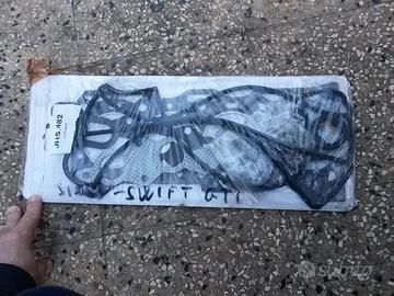 Disponibili per Suzuki Swift GTI: assi a camme 100 l'uno bicchierini 30 euro cadauno pistoni 40 cadauno Bielle 40 cadauna monoblocco nudo perfetto 300 alternatore 50 bobina 50 scarico 2-1 50 euro collettore di aspirazione 150 euro corpo farfallato150 tubo gomma aspirazione 5 radiatore con elettroventola 100 sensori 30 euro centralina 300 euro debimentro 300 testata nuda 600 radiatore con elettroventola 100 spinterogeno 300 scarico modoficato per samurai 200 adattatore ventola samurai 50 debimetro 300 flauto e iniettori 200 kit guarnizioni smeriglio originali 150 euro