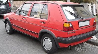 Vendo ricambi x volkswagen golf 2 mk2 seconda serie , modello 85 paraurti stretti , modello 90 paraurti larghi , 1.6 benzina sigla motore EZ , PN , muso , musata , paraurti , fari , stop , parafanghi , cofano , portellone , radiatore , ventola , sportello , porta , portiera , serratura , vetri , motorino macchinetta alza vetri , pulsanti , maniglia , specchietti laterali , sedili tappezzeria , pannelli , galleggiante , serbatoio , motore , cambio , semi asse , giunto , calandra , marmitta , scarico , collettore , mozzi , fusello , pinze freno , dischi , ammortizzatori , sospensioni , tergicristalli , cruscotto , contachilometri strumentazione , volante , scatola sterzo , culla , barca avantreno , retro treno , alternatore , motorino avviamento , comandi aria , devia luci , bauletto porta oggetti , mascherina , parabrezza , frecce , centralina motore modello monoiniettore 1991 , blocca sterzo , ponte , pannello cappelliera posteriore mensola , ruota di scorta , piantone , snodo , bracci , passa ruota , tetto , alette para sole , vaschetta acqua , cerchi , modanature cappotta