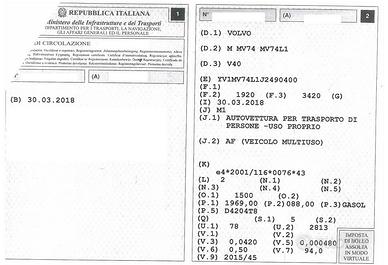 RICAMBI VOLVO V40 D2 (88 KW) ANNO 2018