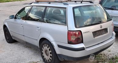 Vendo ricambi x Volkswagen Passat , turbo diesel tdi 1.9 130 cv , 96 kw , 5 e 6 marce , sigla codice motore AVF , AWX , AVB 1.9 101 cv 74 kw , modello 2001 - 2005 , station wagon , muso , musata , paraurti , fari , stop , parafanghi , cofano , portellone , KIT radiatori , ventole , sportello , porta , portiera , serratura , vetri , motorino macchinetta alza vetri , pulsantiera , maniglia , specchietti elettrici laterali , sedili tappezzeria , pannelli , galleggiante , serbatoio , motore , cambio , iniettori , semi asse , giunto , calandra , marmitta , scarico , collettore , mozzi , fusello , pinze freno , dischi , ammortizzatori , sospensioni , tergicristalli , cruscotto , kit air bag , contachilometri strumentazione , volante , scatola sterzo , culla , barca avantreno , retro treno , pompa idroguida servo sterzo , alternatore , motorino avviamento , compressore aria condizionata , comandi aria clima , devia luci , bauletto porta oggetti , mascherina , parabrezza , fendinebbia , centralina pompa abs , sonda , sensori , centralina motore , blocca sterzo , ponte , pannello cappelliera posteriore mensola , ruota di scorta , piantone , snodo , bracci ,passa ruota , tetto , alette para sole , cerchi in lega , vaschetta acqua anche whats app tel 3490692521 tel 3492124581 dal lunedi al venerdi (8,30-13.00 14,00-18,30) sabato (8,30-13.00) gli orari a volte potrebbero variare,quindi chiamate prima di partire (non chiamate il sabato pomeriggio e la domenica perché accetterò solo messaggi)