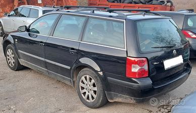 Vendo ricambi x Volkswagen Passat , turbo diesel tdi 1.9 130 cv , 96 kw , 5 e 6 marce , sigla codice motore AVF , AWX , AVB 1.9 101 cv 74 kw , modello 2001 - 2005 , station wagon , muso , musata , paraurti , fari , stop , parafanghi , cofano , portellone , KIT radiatori , ventole , sportello , porta , portiera , serratura , vetri , motorino macchinetta alza vetri , pulsantiera , maniglia , specchietti elettrici laterali , sedili tappezzeria , pannelli , galleggiante , serbatoio , motore , cambio , iniettori , semi asse , giunto , calandra , marmitta , scarico , collettore , mozzi , fusello , pinze freno , dischi , ammortizzatori , sospensioni , tergicristalli , cruscotto , kit air bag , contachilometri strumentazione , volante , scatola sterzo , culla , barca avantreno , retro treno , pompa idroguida servo sterzo , alternatore , motorino avviamento , compressore aria condizionata , comandi aria clima , devia luci , bauletto porta oggetti , mascherina , parabrezza , fendinebbia , centralina pompa abs , sonda , sensori , centralina motore , blocca sterzo , ponte , pannello cappelliera posteriore mensola , ruota di scorta , piantone , snodo , bracci ,passa ruota , tetto , alette para sole , cerchi in lega , vaschetta acqua