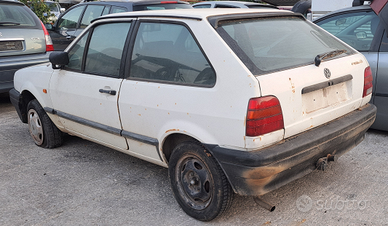 Vendo ricambi x volkswagen Polo modello '90 - '92 , benzina e diesel , carburatore , mono iniettore , muso, musata , paraurti ,fari , stop ,parafanghi, cofano , portellone, radiatore , ventola , sportello , porta , portiera , serratura , vetri , macchinetta alza vetri , maniglia , specchietti laterali , sedili tappezzeria (anche GT , G40) , pannelli , bobina , pompetta benzina , galleggiante , serbatoio , motore , cambio , semi asse , giunto , calandra , marmitta , scarico , collettore , mozzi , fusello , pinze freno , dischi , ammortizzatori , sospensioni , tergicristalli , contachilometri strumentazione , volante , scatola sterzo , culla , barca avantreno , retro treno , alternatore , motorino avviamento , devia luci , mascherina , parabrezza , frecce , , blocca sterzo , ponte , pannello cappelliera posteriore mensola (anche x modello coupe ) ruota di scorta , piantone , snodo , bracci , passa ruota , tetto , alette para sole , cerchi
