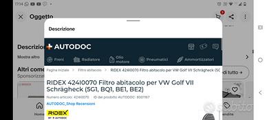 filtro abitacolo si carboni attivi per wv golf 7,misure in foto .nuovo,euro 20