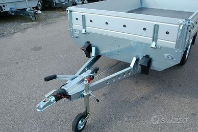 Rimorchio con massa complessiva 1300 Kg. misure utili 254 x 151. Sponde in alluminio estruso altezza 40 cm. Pianale in pannello fenolico portata utile 1011 Kg. Pneumatici 165 R13
