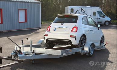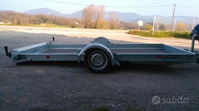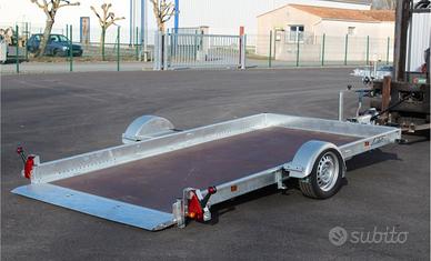 Rimorchio abbassabile brand francese Lider con martinetto idraulico misure utili interne 350 x 180. Spondina perimetrale di cm. 12.
