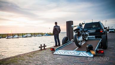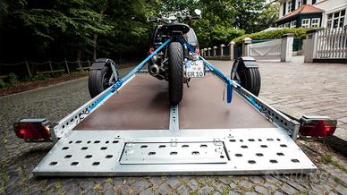 Rimorchio carrello abbassabile, brand tedesco, mediante martinetto idraulico. Portate da 750 a 1800 Kg.