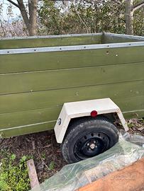 Rimorchio artigianale per fuoristrada o piccolo trattore lungo 200 cm e largo 165 con sponde altezza 70 con pianale in lamiera da 3mm . Lo abbiamo usato per anni dietro un fuoristrada per recuperare la legna nei boschi ora fermo ma in ottimo stato. Gomme buone e freni ok .