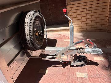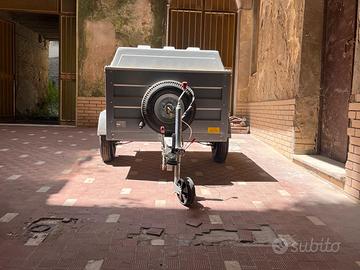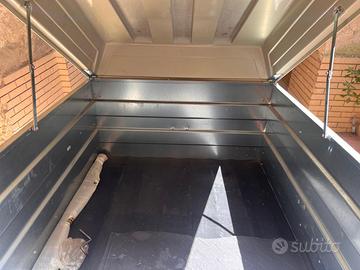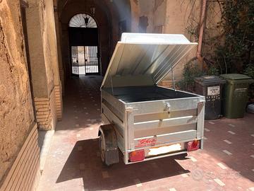 Vendo carrello appendice con ruote esterne 145 R 10, quindi senza limiti di velocità, portata 440 Kg, lunghezza 2450, larghezza 1500, altezza 1280, con coperchio basculante, sponde alte 80 cm e chiusura con chiave, le misure interne sono 1450x1150x80, molto capiente. Ha percorso 350 km ed è stato conservato in garage.