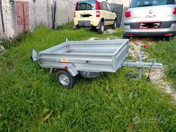 rimorchio auto della cresci come nuovo,con libretto dimensioni 2,50×1,20, dimensioni utili 1430×870,portata 240kg, pneumatici nuovi compreso ruotino di scorta,ha bisogno solo della revisione dal costo di 70€