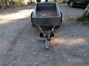Rimorchio per trasporto cose, marca Ellebi, ruote alte (esterne x maggiore stabilità), misure 150x100, revisionato, gommato. Portata 500 kg Con ruota di scorta posizionata sotto il cassone. Pronto all'uso. Revisionato