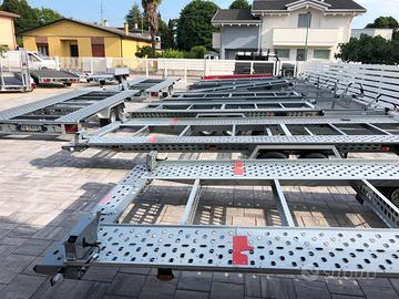 Ottimo anche per veicoli con baricentro molto alto, in quanto ha un telaio ribassato con ruote da 10' studiato per esser caricato su 4 punti.