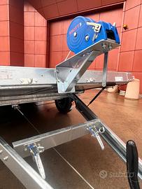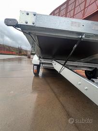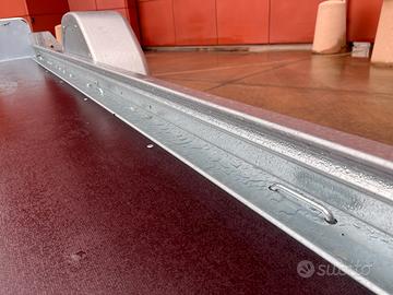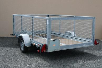 Spondina laterale di 10 cm. Ruote esterne consente di ottenere baricentro basso ed un'inclinazione perfetta per caricare e scaricare attrezzature da giardinaggio e con sponde + sovra sponde in rete si raggiunge un volume di carico di 4,6 mc. Altezza pianale da terra 46 cm. Pneumatici 155/70 R 13.