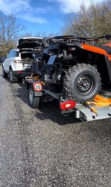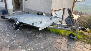 Rimorchio molto utile per auto e quad di piccole dimensioni con verricello, adatto fino a 860 kg. Costruito originariamente nel 1985. Pneumatici in ottime condizioni e ruota di scorta con pneumatico nuovo di zecca montato. Il rimorchio è stato aggiornato nel 2016 con ACI per il trasporto di auto da corsa da competizione. La revisione scade il 05/2027.
