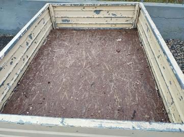 Rimorchio carrello auto dotato di freni e freno a mano con sponta posteriore apribile, dimensioni utili 140 x 110 cm.