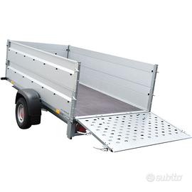 2440 x 1250 mm. sponde in lamiera zincata H 355 mm. Rimorchio PTT 750 Kg non frenato.