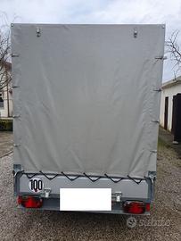 Vendo rimorchio doppio asse STEMA STL ALU 2000 kg (tandem) con freno, dimensioni interne 301 x 153 cm, altezza interna con telo circa 180 cm.