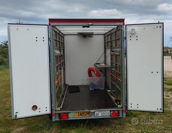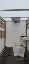 Completissimo con pannello fotovoltaico per batteria e minimover, struttura metallica a ripiani, rampe per moto o quad. dimensioni interne: 3.5X1.55X1.90.