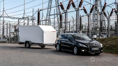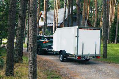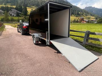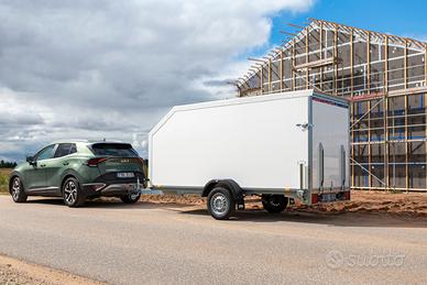Rimorchio di qualità superiore brand Respo con sospensioni a balestre binate e ammortizzatori per il massimo confort di guida, furgonato in fiberglass nei colori bianco o nero nelle versioni: