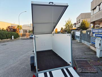 RIMORCHIO ELLEBI-BRENDERUP USATO, FRENATO CON RAMPA DI CARICO - MISURE DI CARICO 257 X 130 cm x 130 cm DI ALTEZZA INTERNA UTILE, PORTATA 771 KG, MASSA COMPLESSIVA 1000 KG, GIA IMMATRICOLATO, CONDIZIONI ECCELLENTI. USATO POCHISSIMO E COMPLETO DI RUOTA DI SCORTA, LA REVISONE MINISTERIALE SARA' EFFETTUATA PRIMA DELLA CONSEGNA.