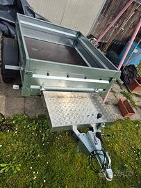 Rimorchio nuovo , preso a Gennaio 2025 e percorso forse 50km Cassone da 1400x1200 ,ribaltabile , sponde rimovibili , no freni la vasca in allumunio misura 800X480X80 ed é fissata con 4 bulloni , il retro ha due piedi allungabili per stabilizzare