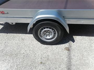 Rimorchio nuovo trasporto cose, dimensioni utili cm 300*150*18 cm con kit sponde alt 66 cm. Pesi pieno carico 800, 900, 1000, 1100, 1200, 1300 kg. Basculante, timone a V, freni, rampa posteriore risalita, luci ingombro, ganci ancoraggio carico, ruote cinque bulloni. Pianale rivestito.