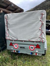 Vendo carrello rimorchio telonato con targa propria. Lunghezza: 3,020 M Larghezza: 1,590 M Portata: 730 Kg Il carrello è stato rivestito internamente con alluminio. Sono stati cambiati i fanali con fanali a Led.