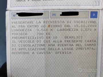 Vendo carrello rimorchio per trasporto di cose marca Schwarz Klaus sas, immatricolazione anno 2000, portata utile di 700kg.